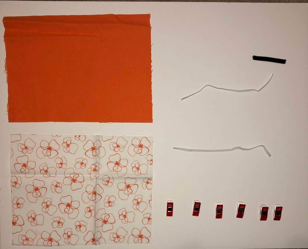 - One 9 inch x 7 inch rectangle of light weight flannel for the inside layer of the mask (mine is orange
